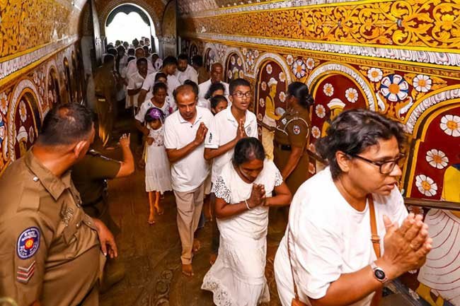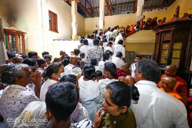 The special exposition of the Sacred Tooth Relic, ‘Siri Dalada Wandanawa’, is scheduled to continue today for the fourth consecutive day at the Temple of the Sacred Tooth Relic in Kandy, this afternoon (21).